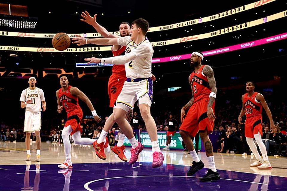本场比赛中,湖人的先发锋线新星杰克-拉拉维亚(Jake LaRavia)的表现显然是无法令人感到满意的。拉拉维亚全场出场22分22秒,投篮5中2,三分线外2中2,罚球2中1,得到了7分5篮板1助攻3抢断4盖帽的数据,还有1次失误和1次犯规,正负值为-15。拉拉维亚在比赛前两分钟就连续命中了两记三分,直接拿到了6分。然而在接下来的46分钟,拉拉维亚甚至都没有命中一记运动战进球,加起来只得到了可怜的1分,简直是一件让人无法理解的事情。不仅如此,他在传球和策应方面的能力也是没有发挥出来的。拉拉维亚在进攻端显然没有发挥出自己的特点,事实上,他在防守端的表现也是非常一般的,同样没有起到很好的效果。